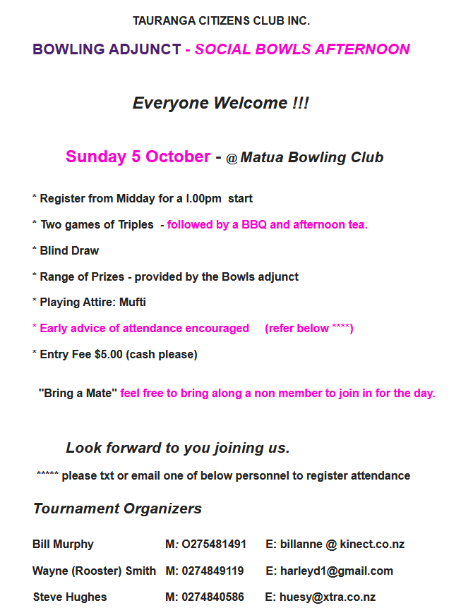 If you are interested please contact the Club Office either in person or by phoning 07 578 7023